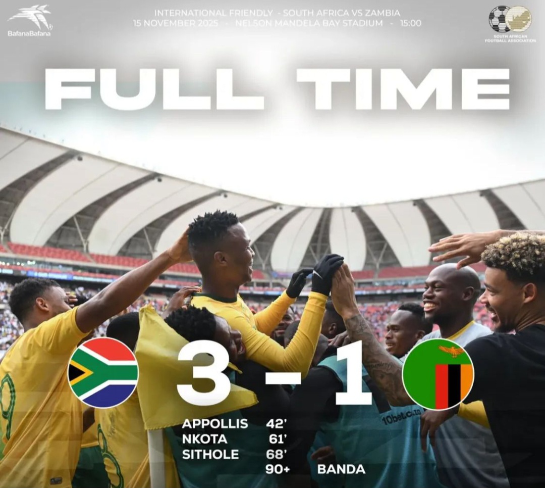 UMzantsi Afrika wenze umsebenzi oncomekayo njengoko ubethe iZambia ngo 3–1 kungquzulwano lwebhola ekhatywayo. Umdlalo uye waphila ngomzuzu wamashumi amane anesine ngethuba u-Appolis ebetha igowuli ngokuzithemba, nto leyo eyanika aBafana Bafana isikhokelo esilifaneleyo ukuya exesheni. IZambia izamile ukuhlanganisana kwakhona, kodwa amandla oMzantsi Afrika ebengaphezulu.
