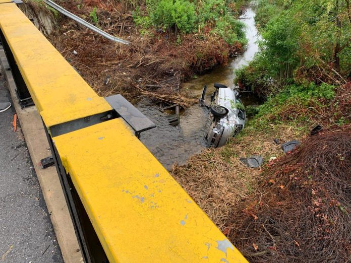 “Kurhaneleka ukuba isithuthi besihamba sisehlisa iTarget Kloof, waze umqhubi wohluleka ukuyilawula, wabetha umqobo waphelela emanzini.