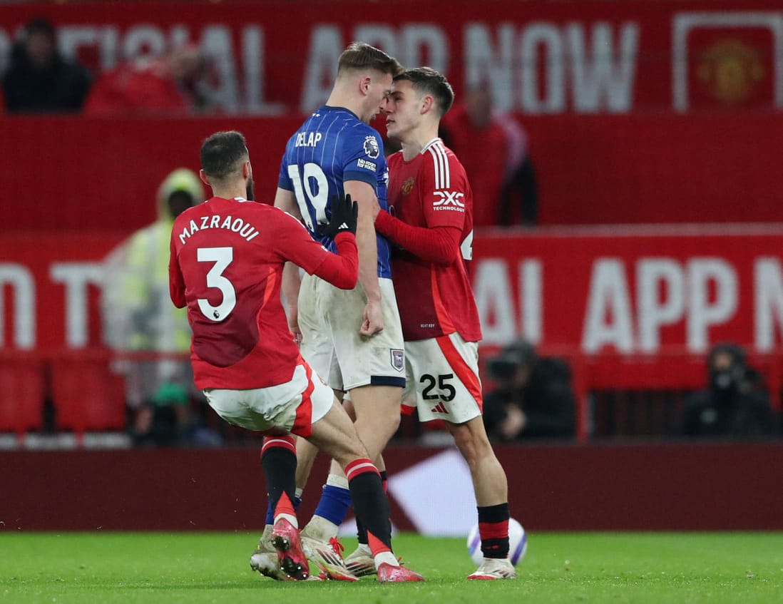 Emva koxinezelelo umdlali oyinkokheli kweliqela leIpswich uSam Moirsy uye wafaka inqaku kumnatha wabo nto leyo enike ithemba kwiqela lika-Ruben Amorim ongumqeqeshi we-United, atsho alingana la maqela ngelinye macala (1-1) kodwa khange kube kudala kwakwisiqingatha sokuqala somdlalo uMathijs de Ligt ufake inqaku lokuhamba phambili ngamanqaku amabini kwelinye (2-1) kubahlinzeki.