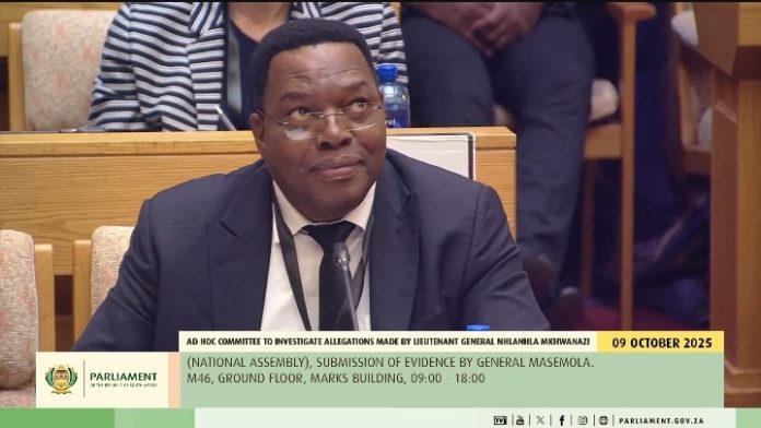 UMkomishinala wamaPolisa uNjengele Fani Masemola use Palamente ngalomzuzu uphendula phambi kwe Komiti yePalamente esekelwe ukuvavanya ubungqina bekomishoni ka Madlanga ephanda ngezithyolo zongenelelo nobuqhophololo kwimicimbi yolawulo lomsebenzi wesiPolisa eziye zabhentsiswa esidlangalaleni nguMkomishinala wamaPolisa KwaZulu-Natal uLieutenant General Nhlanhla Mkhwanazi kwinyanga ezidlulileyo.